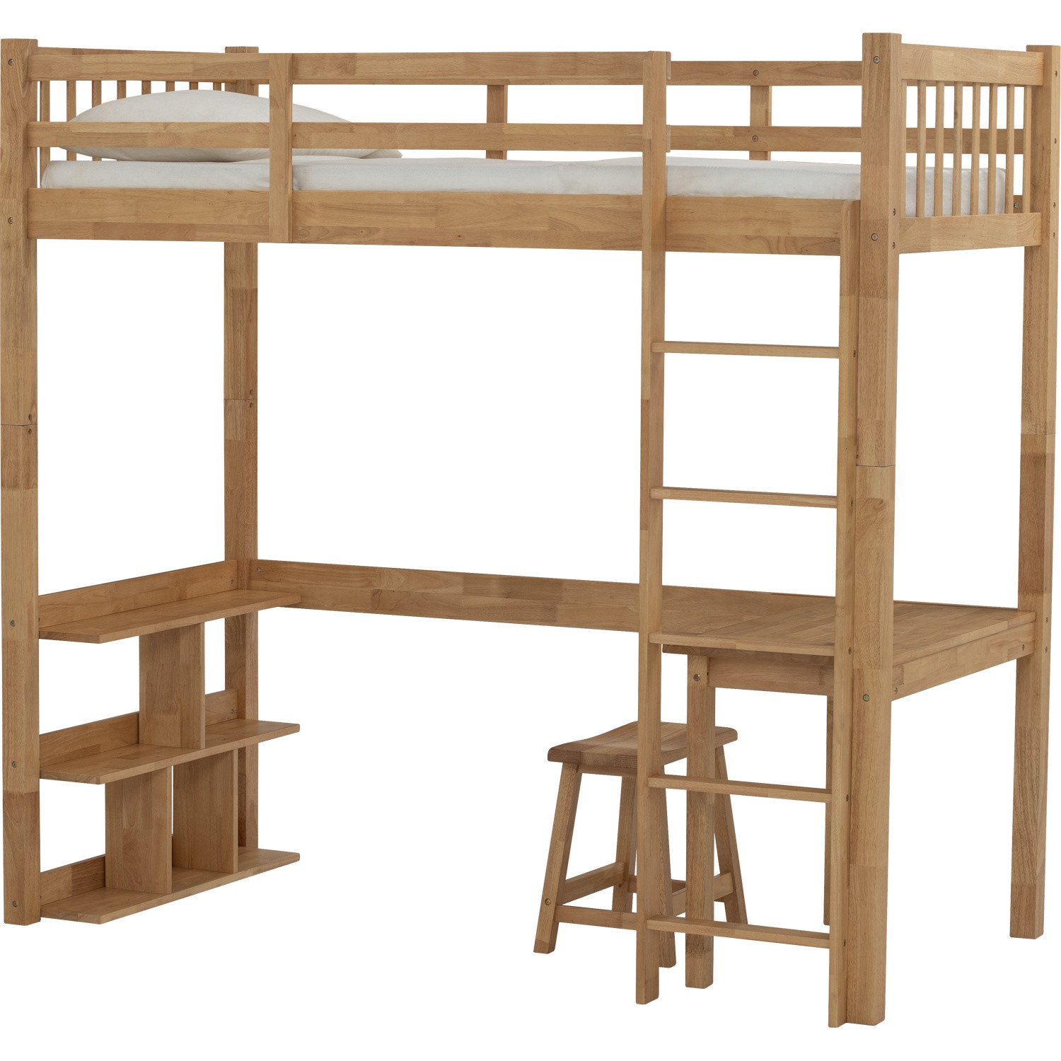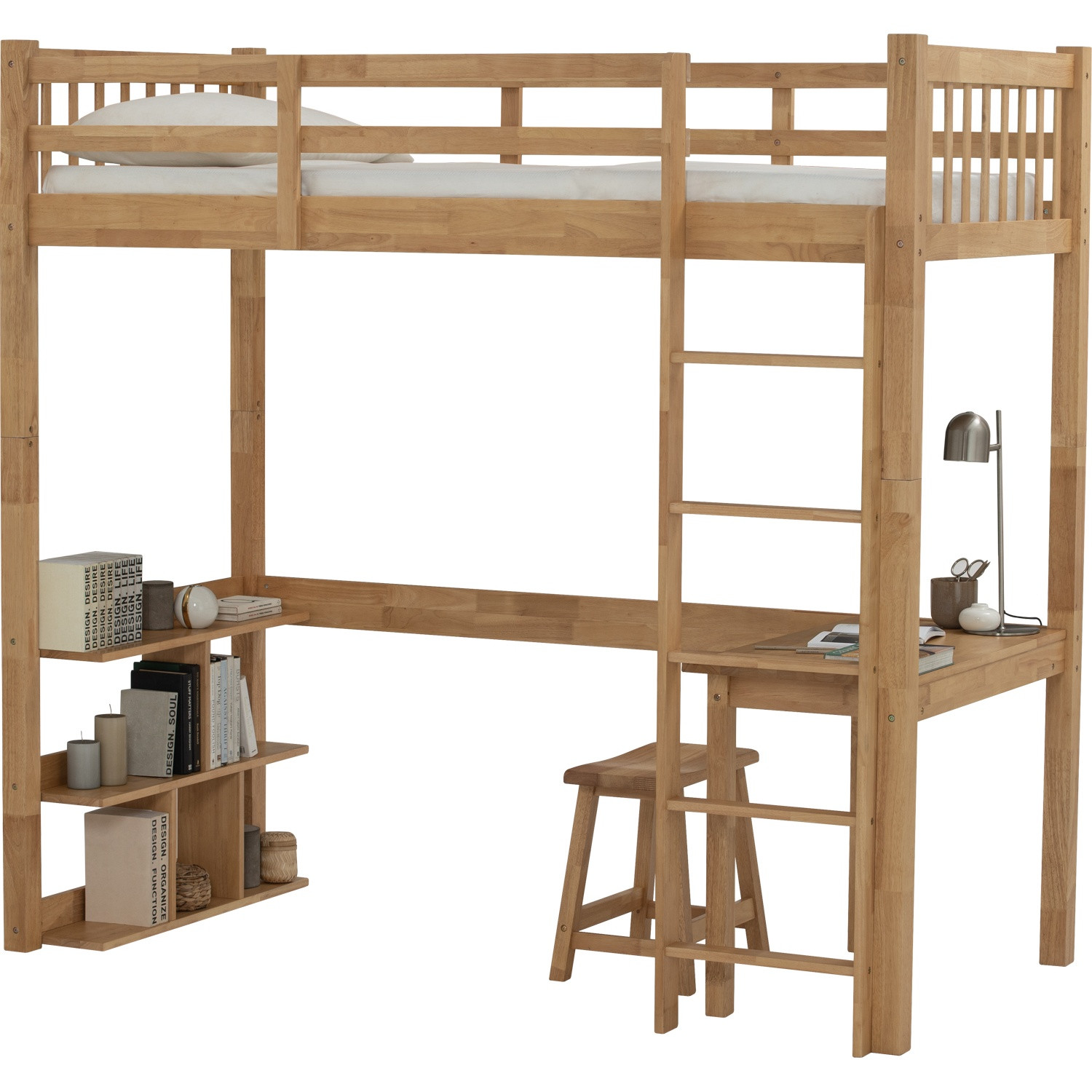Nuvia double decker with study desk and stool in Natural colour (Fit mattress : 910mm x 1930mm)