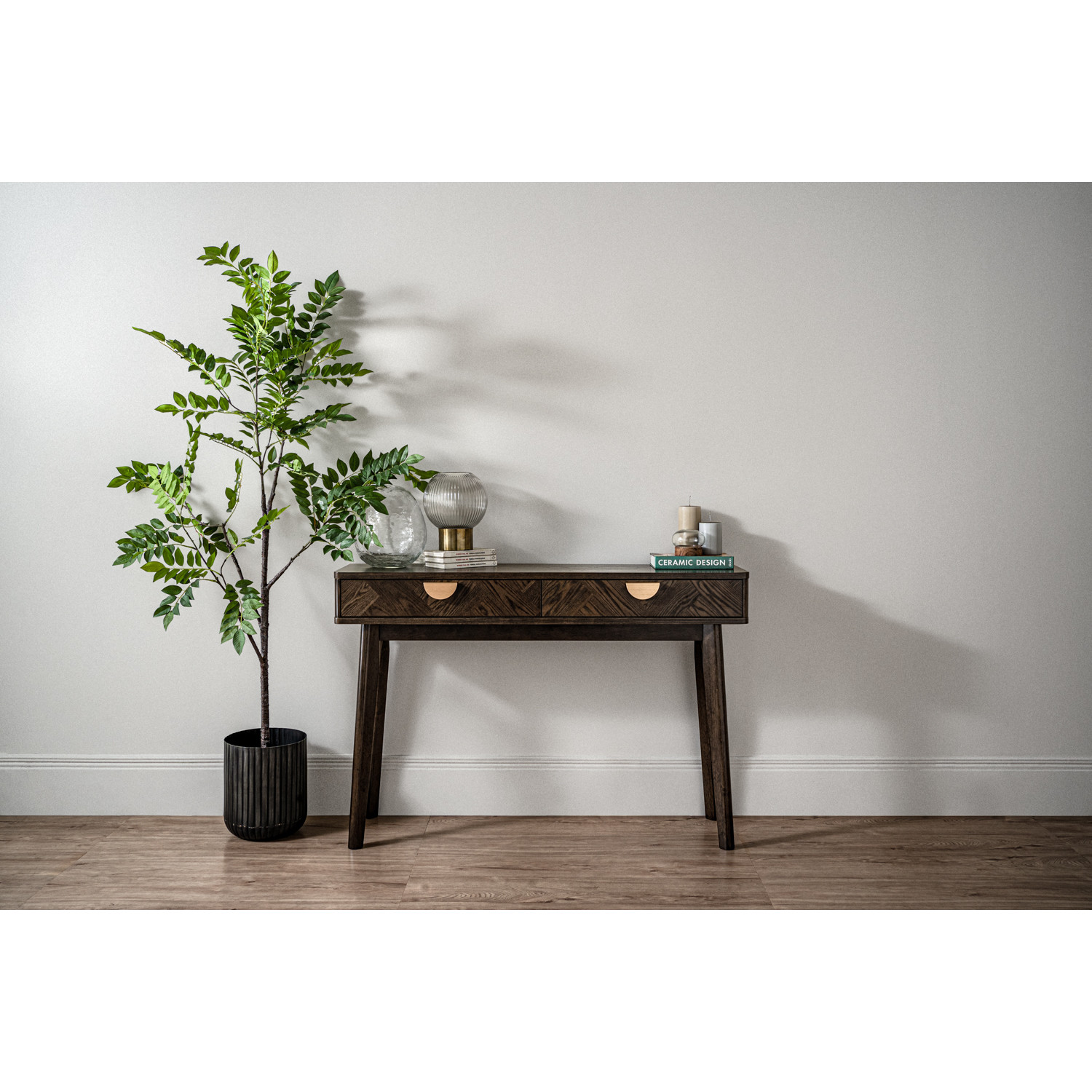 Loftus console table with Oak veneer in Smoke Oak colour