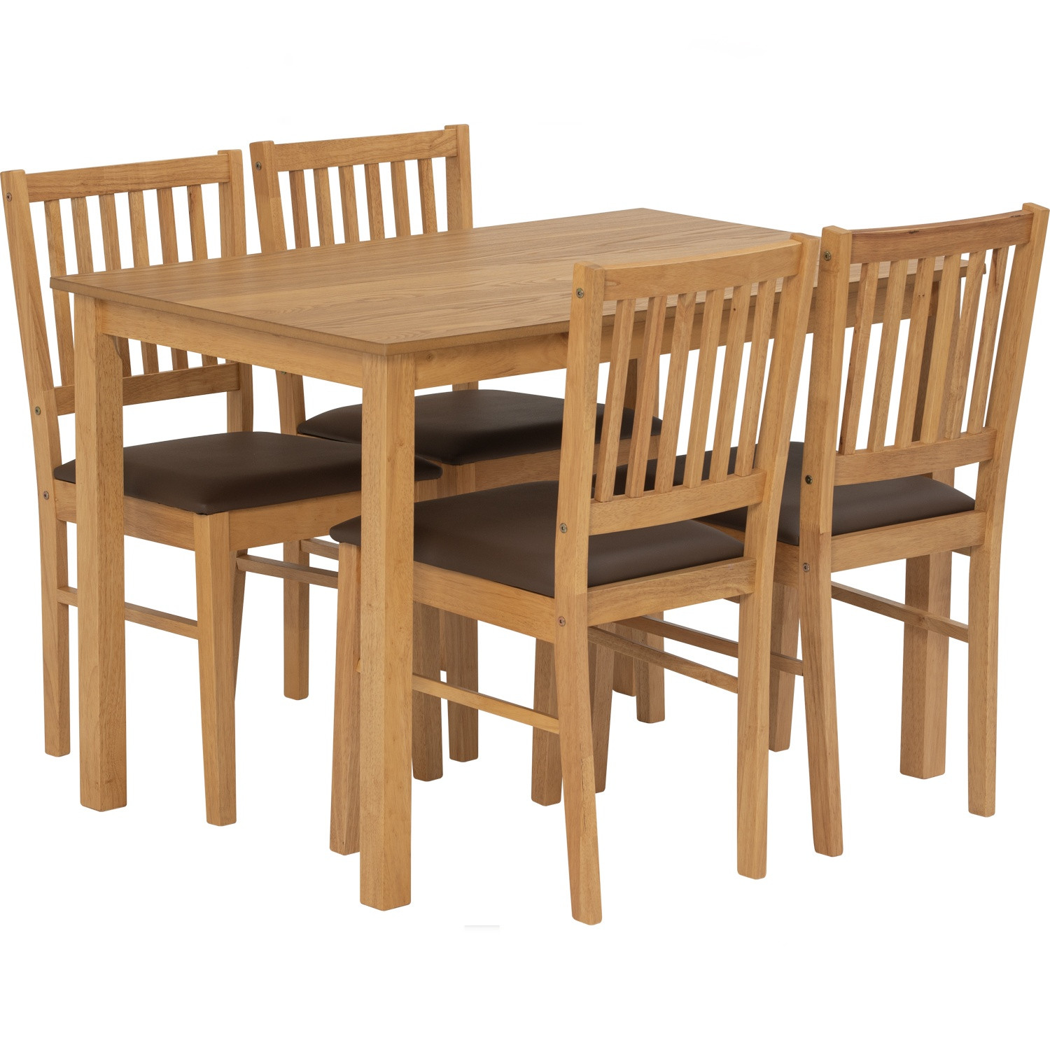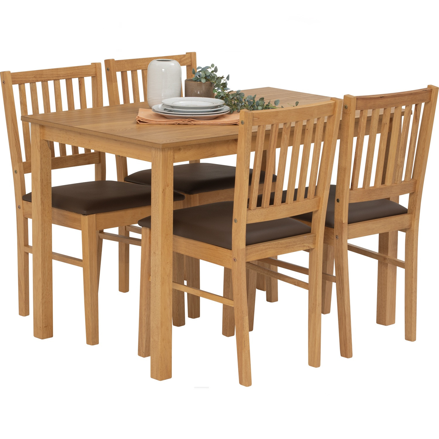 Rune dining set 1+4 in Natural colour, Mocha colour Vinyl cushion seat