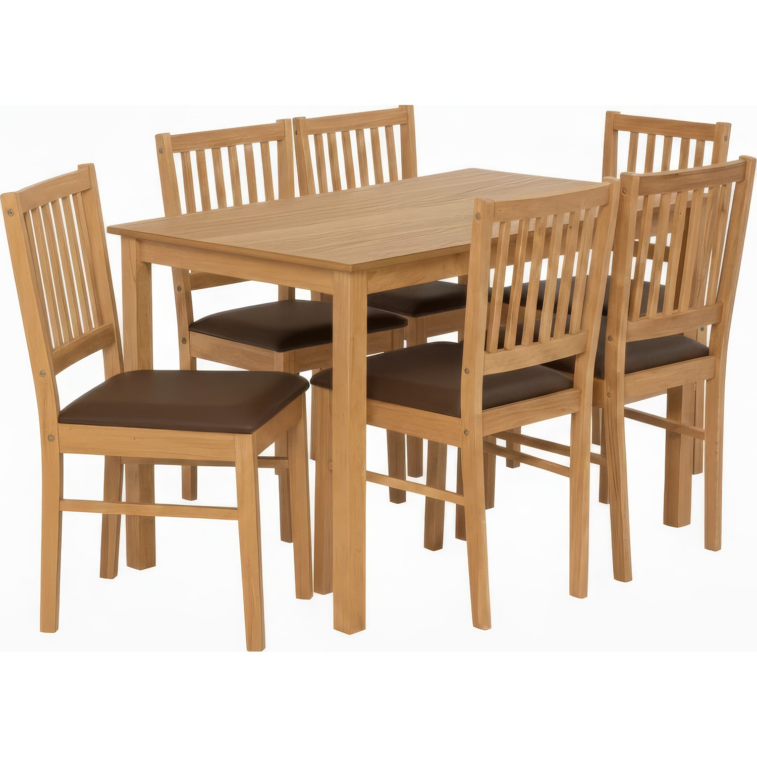 Rune dining set 1+6 in Natural colour, Mocha colour Vinyl cushion seat