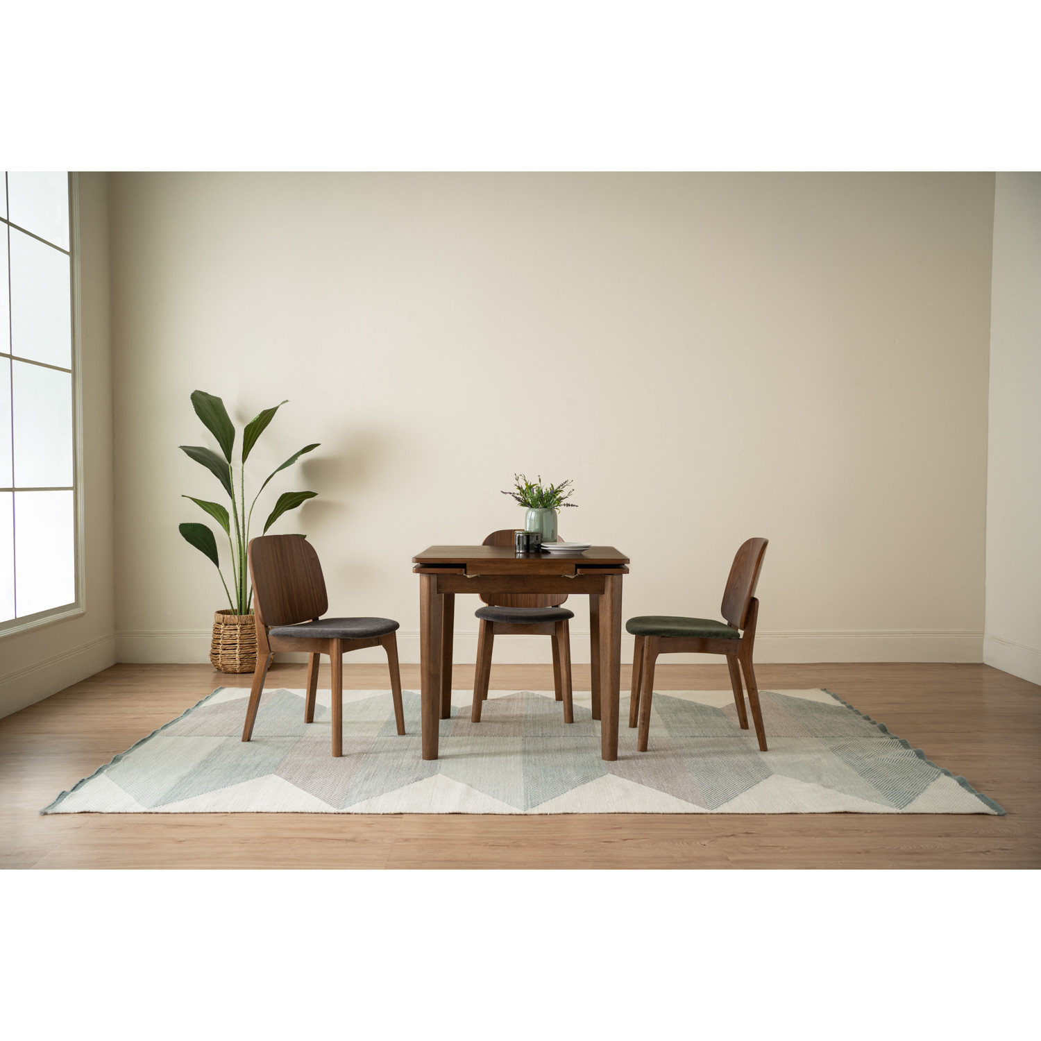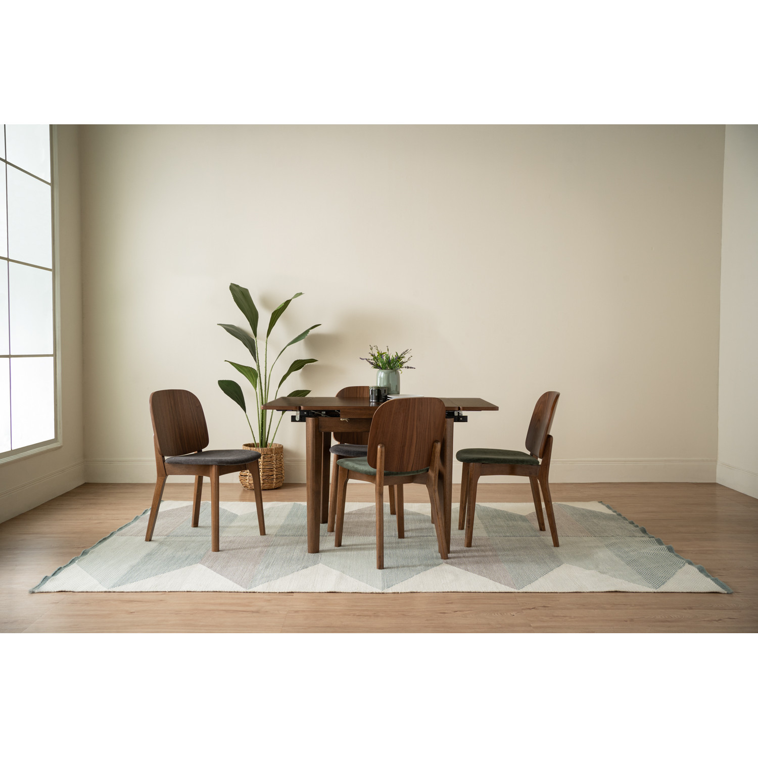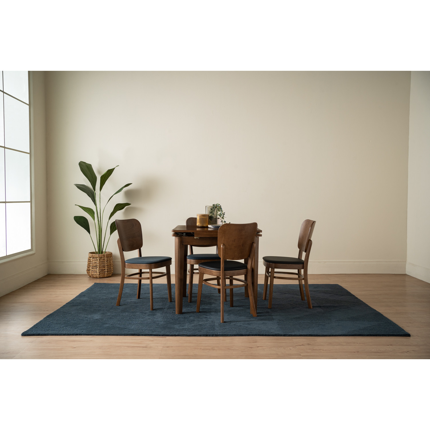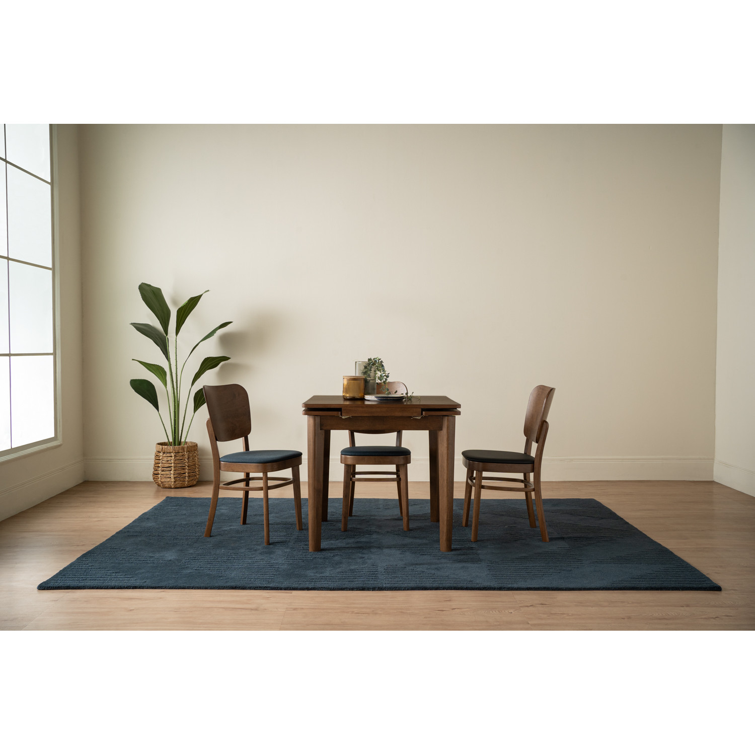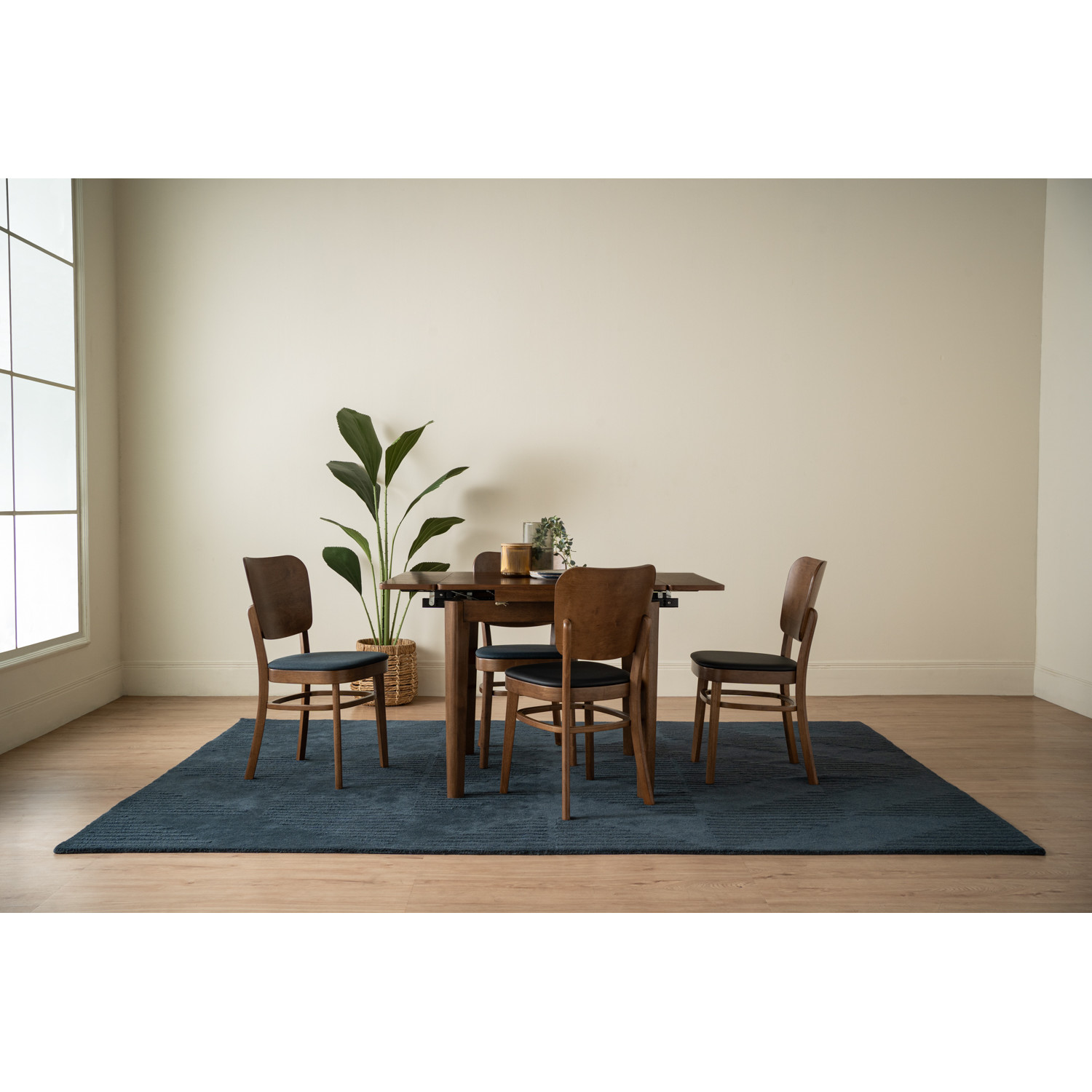 Toffer 800x800+200+200 extension table in Cocoa colour leg, Walnut veneer top