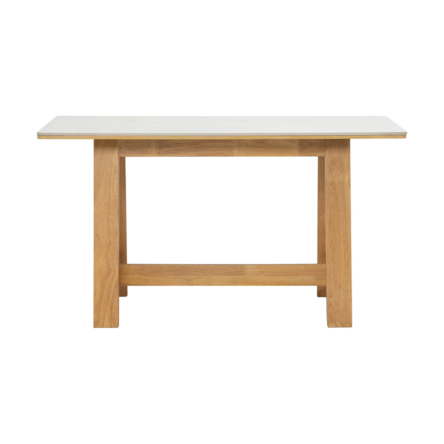 Trenton 800x1400 dining table in Natural colour leg, White Marble sintered stone top