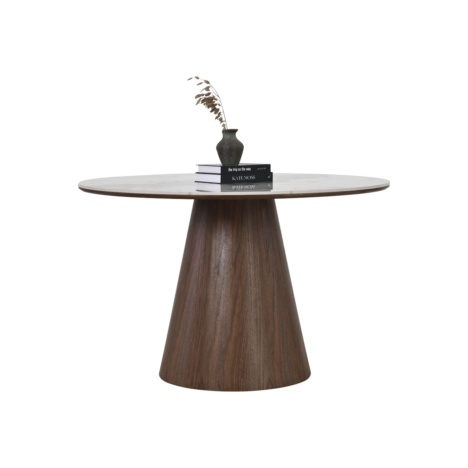 Monora Dia 1200 round dining table in Pandora Marble top with Walnut colour leg