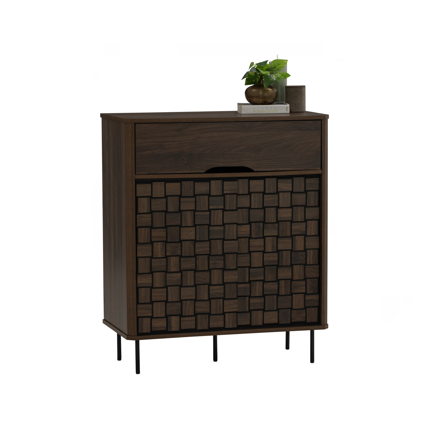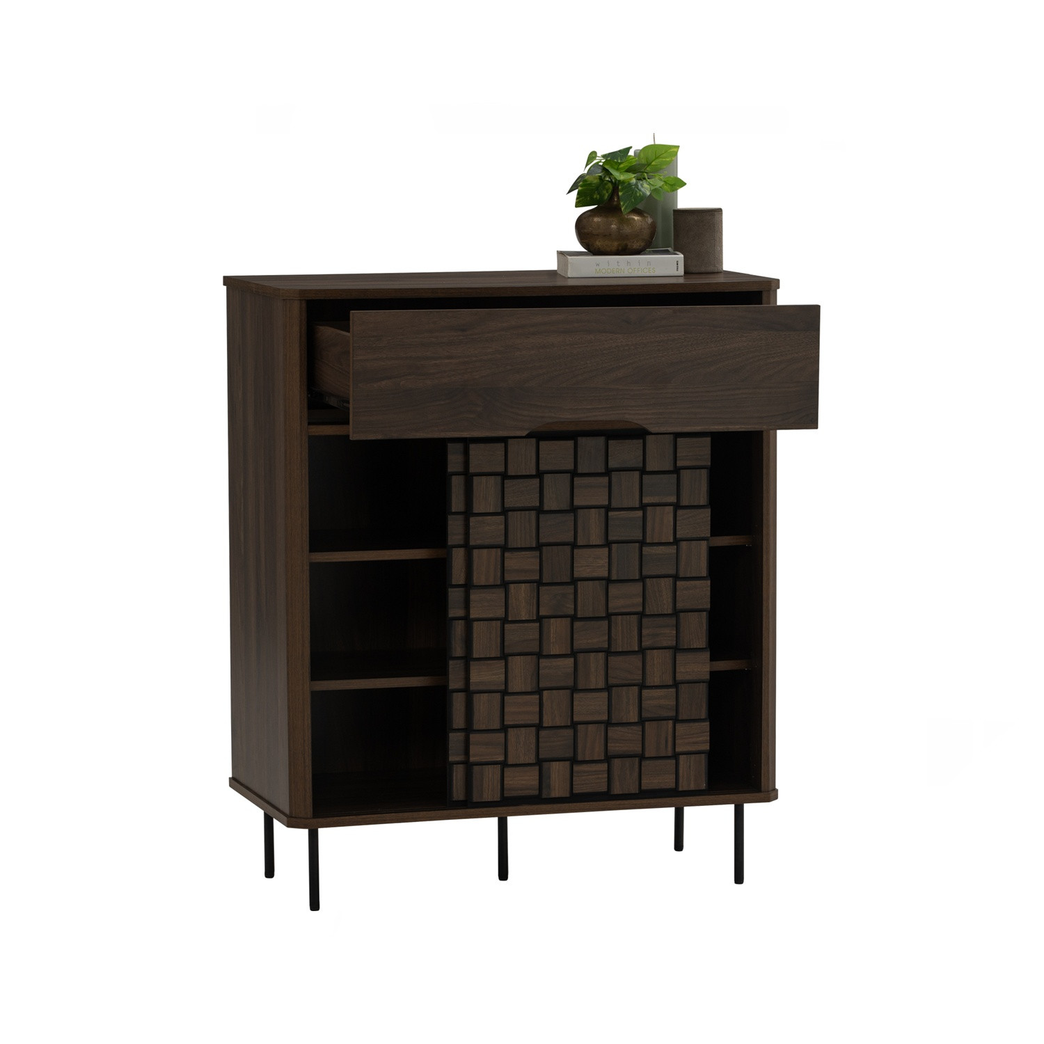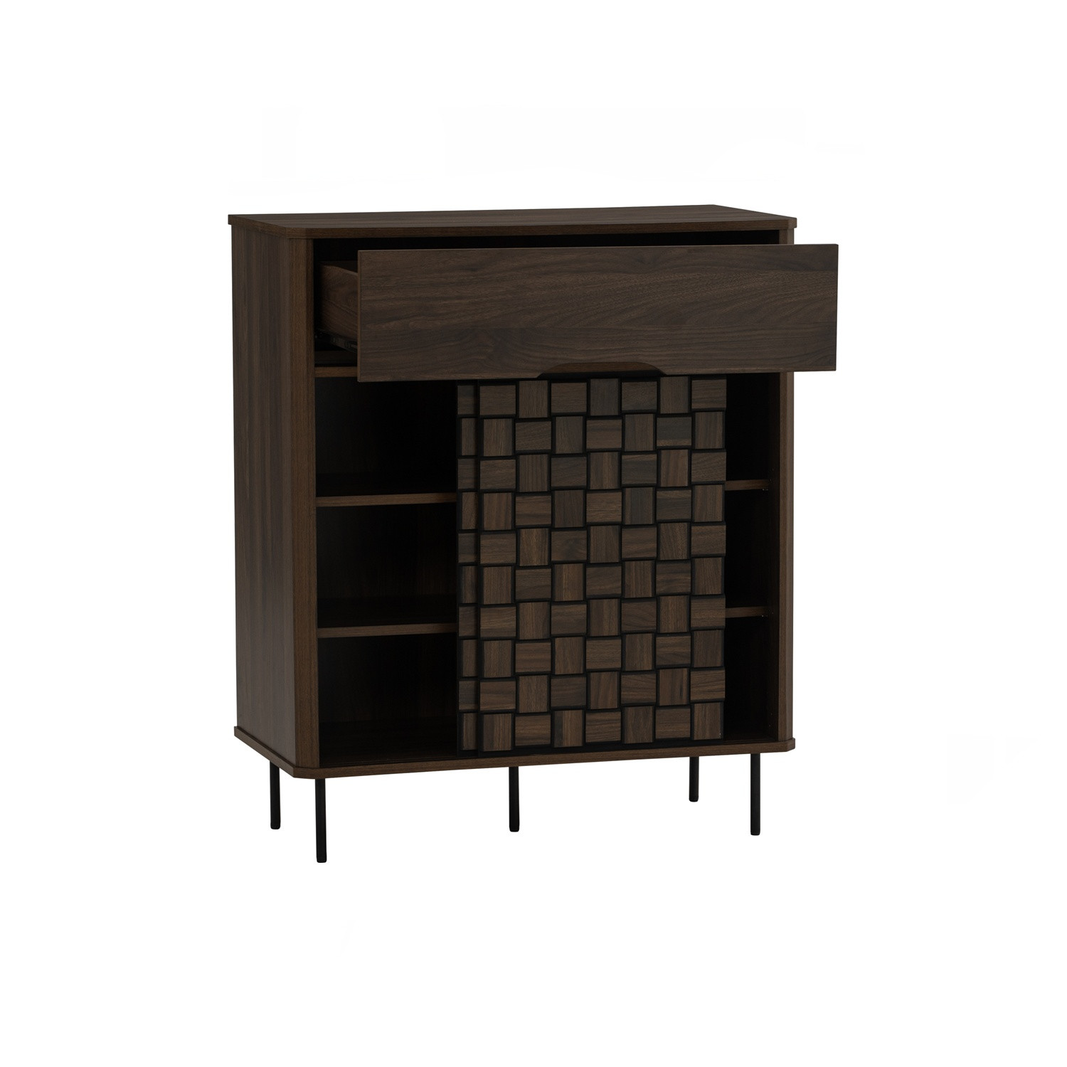 Frisco multi function cabinet in Matt Black Epoxy colour leg, Walnut colour body