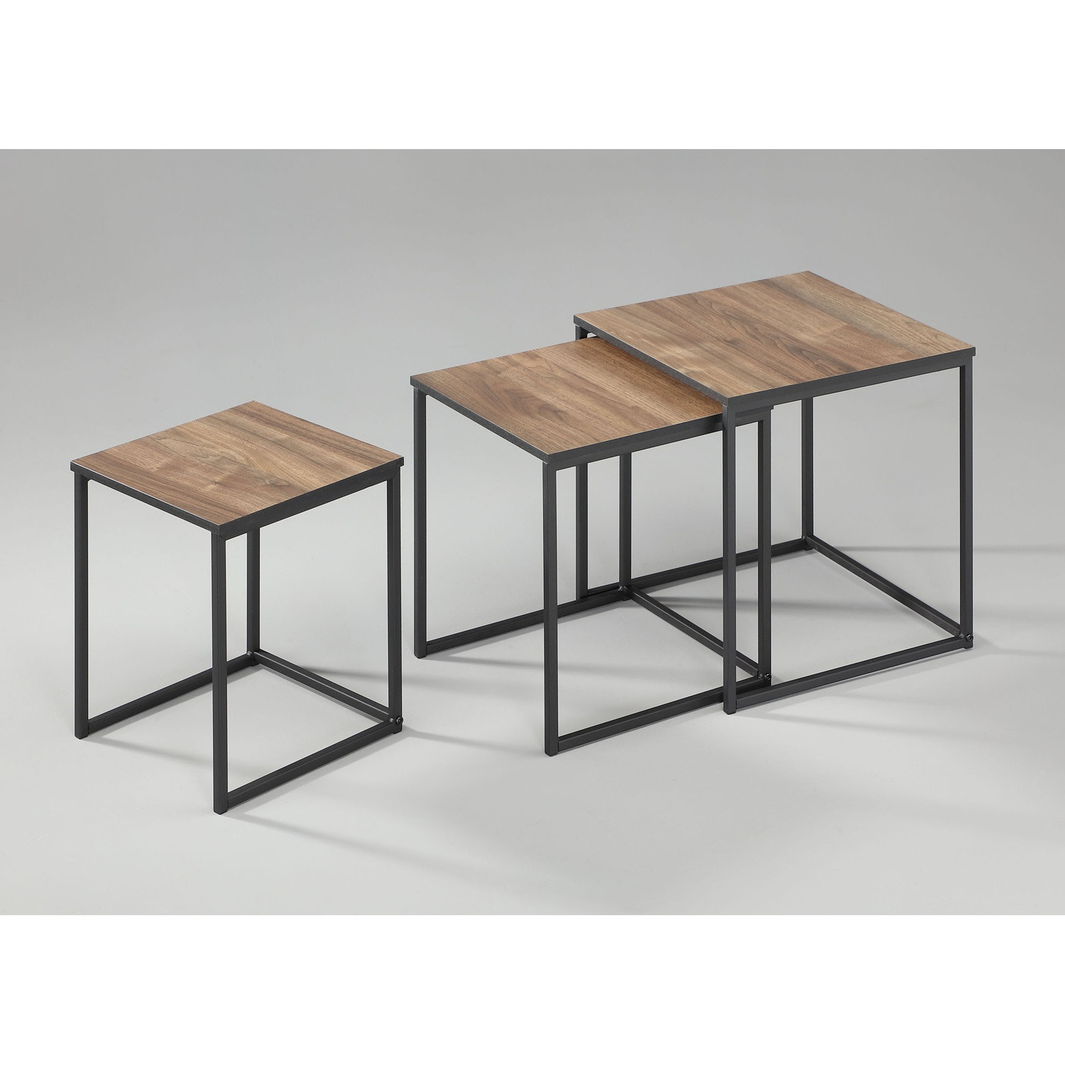 Nesthree nest of 3 coffee table set in Walnut colour Melamine top with Matt Black Epoxy leg