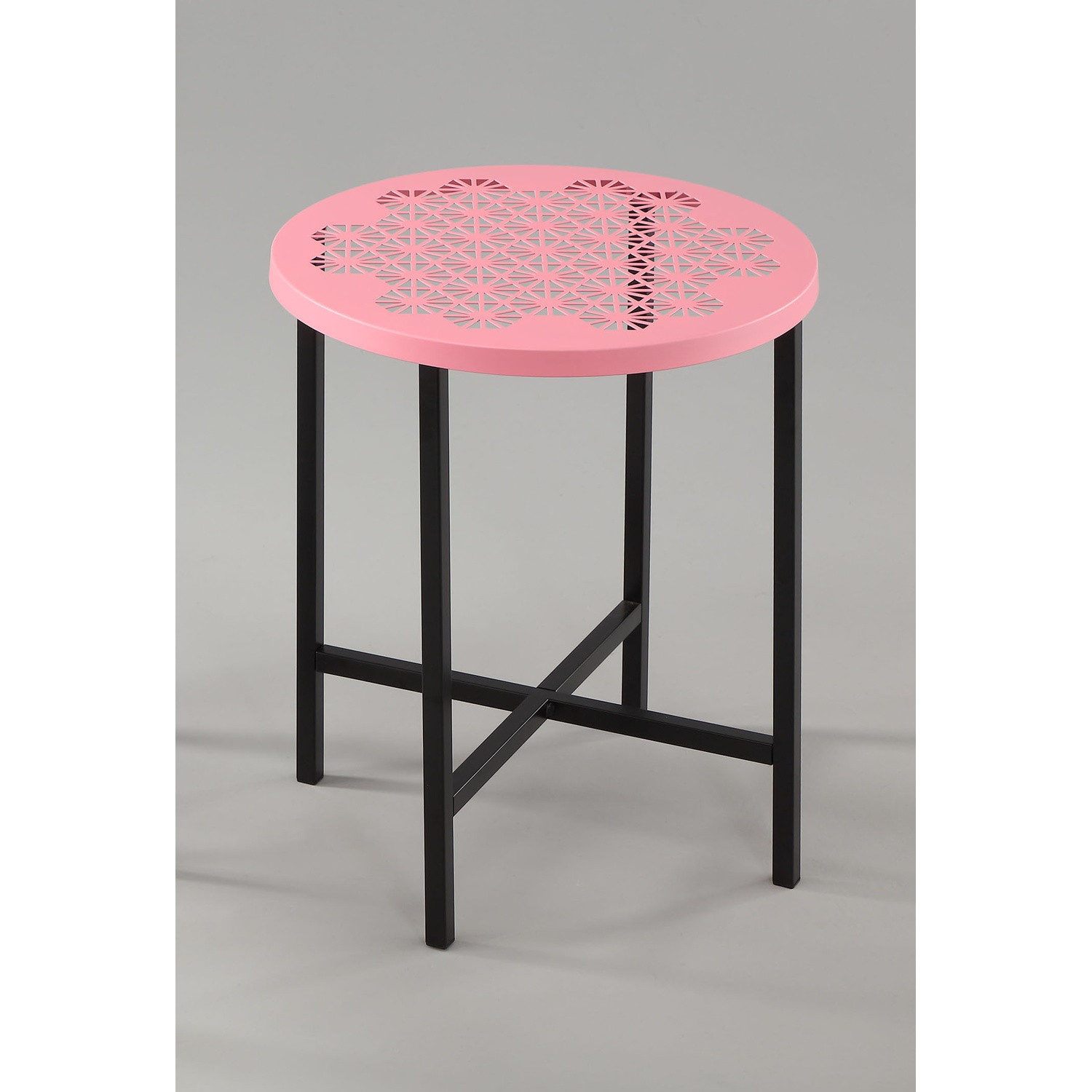 Holron side table in Pink colour metal top and Black colour metal leg