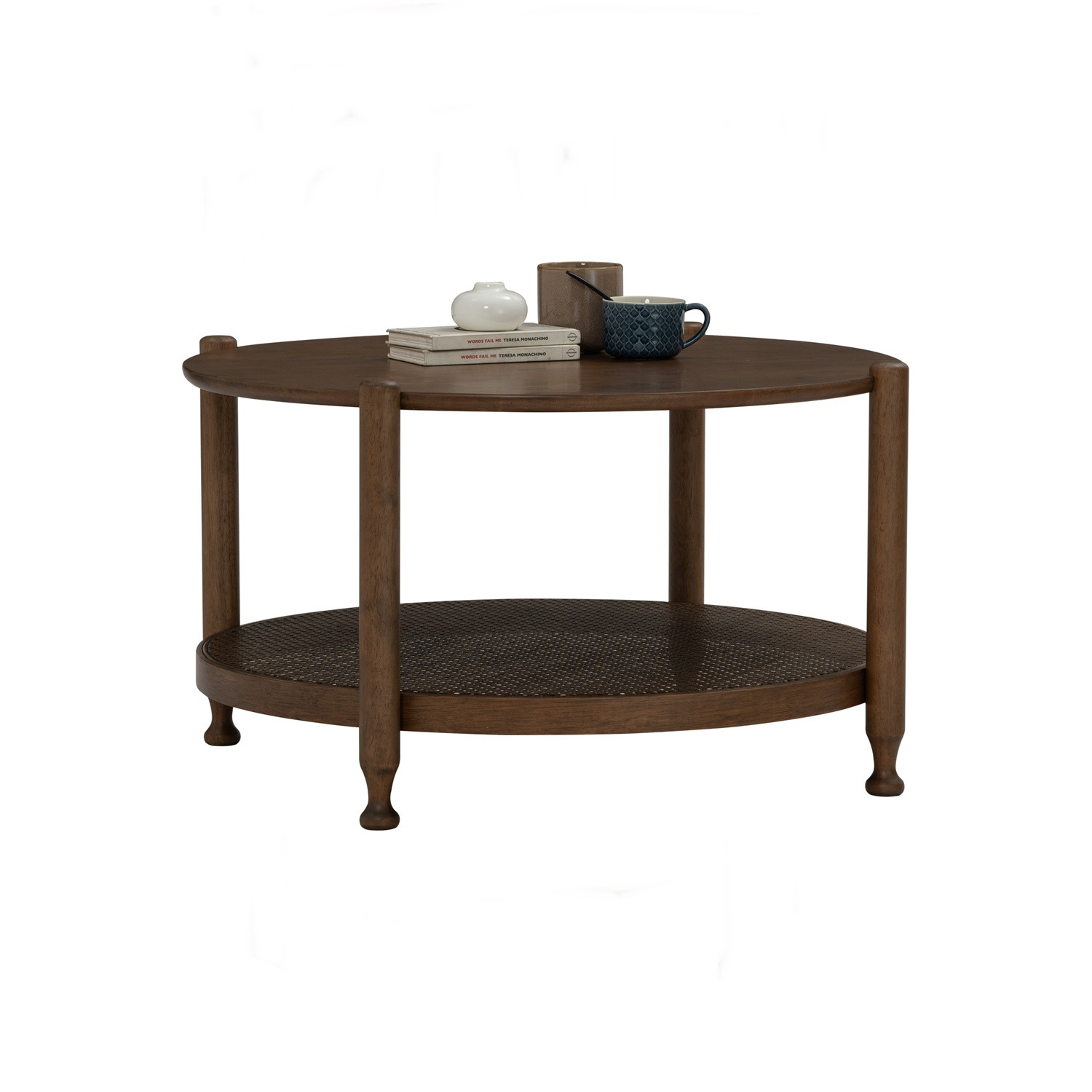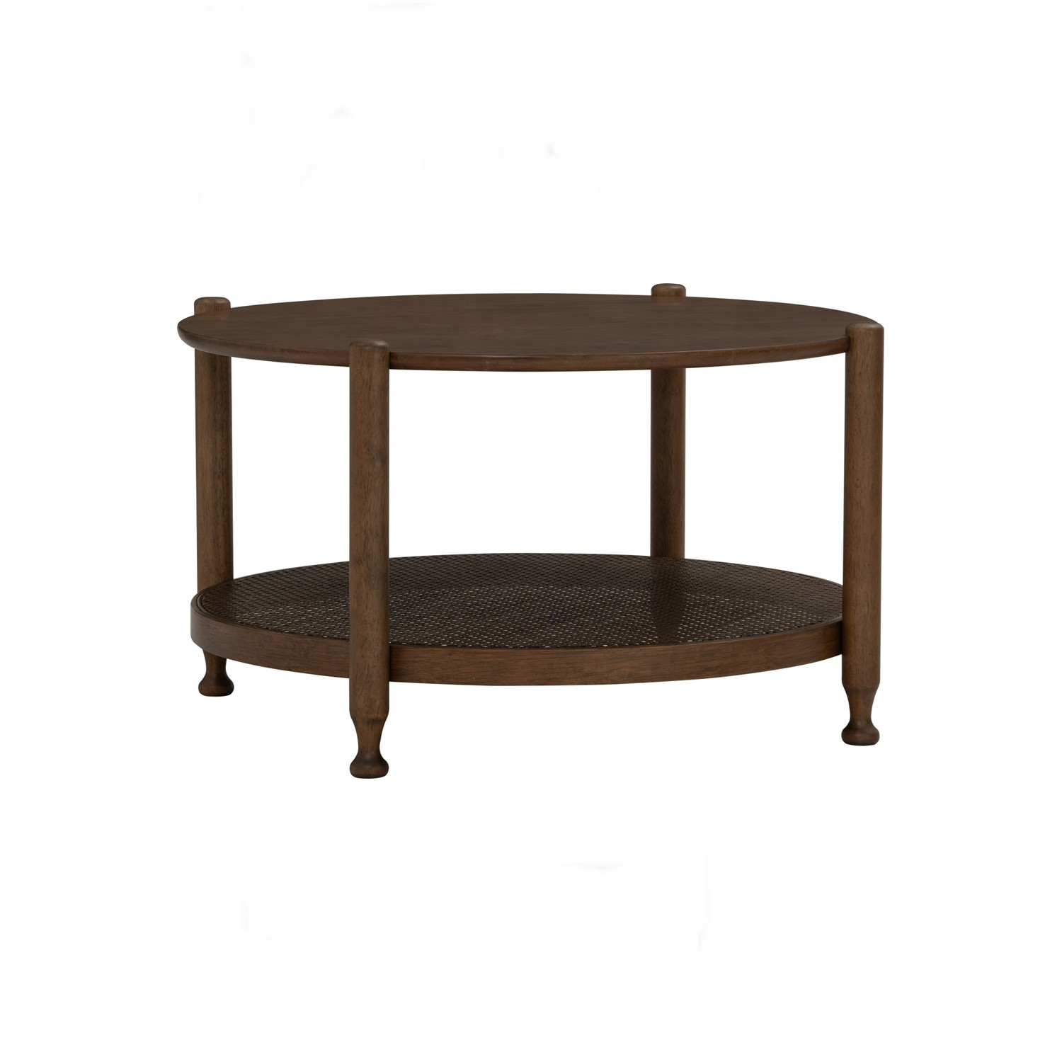 Willow round coffee table in Cocoa colour Solid top with Rattan shelf
