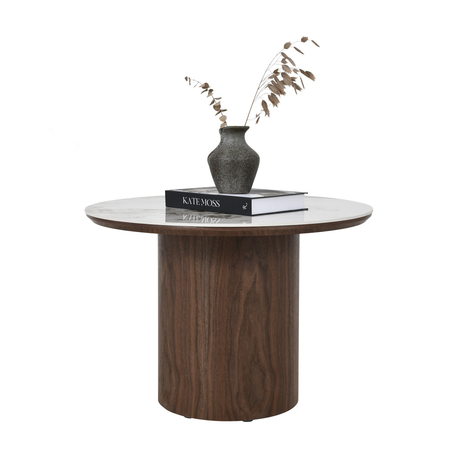 Emery Dia 600 round side table in Pandora Marble colour with Walnut colour leg