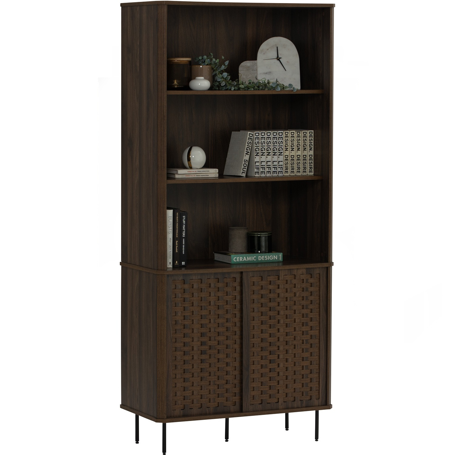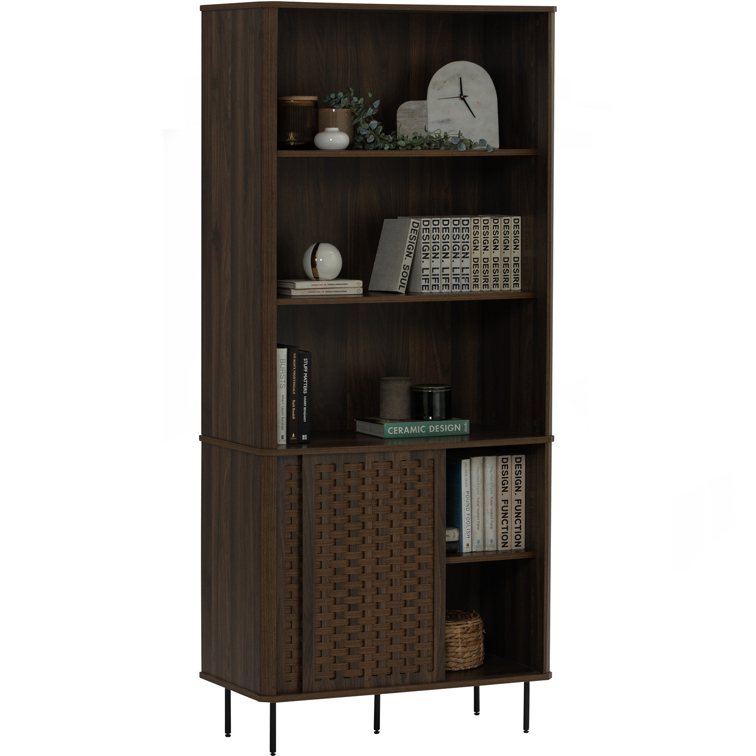 Krabi bookcase in Matt Black Epoxy colour leg, Walnut colour body